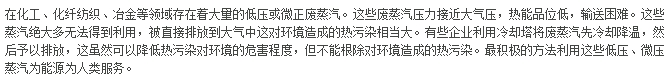 在化工、化纤纺织、冶金等领域存在着大量的低压或微正废蒸汽。这些废蒸汽压力接近大气压,热能品位低,输送困难。