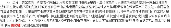 1, 测量仪器:量筒、比重计、温度计、溴化锂溶液的密度曲线图、待测溶液