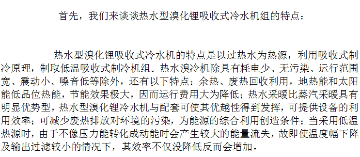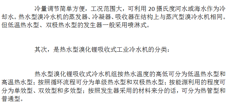 热水型溴化锂制冷机的分类和特点