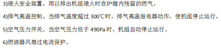 2)燃料压力保护装置。用以保证机组燃料压力相对稳定,使燃烧正常,防止压力波动,产生回火、熄火现象。