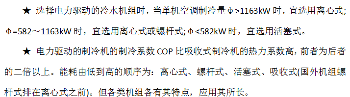★ 对有合适热源特别是有余热或废热等场所或电力缺乏的场所,宜采用吸收式冷水机组。