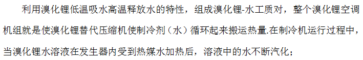 溴化锂中央空调属于吸收式中央空调,工质对为:溴化锂-水。