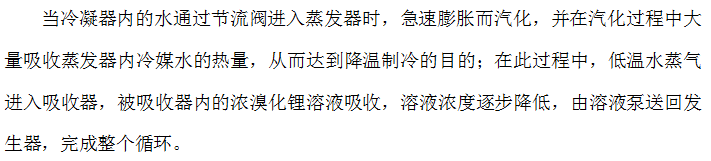 水蒸气进入冷凝器,被冷却水降温后凝结;随着水的不断汽化,发生器内的溶液浓度不断升高,进入吸收器;