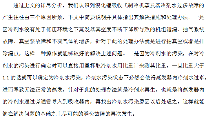 蒸发器冷剂水过多的故障分析及处理方法
