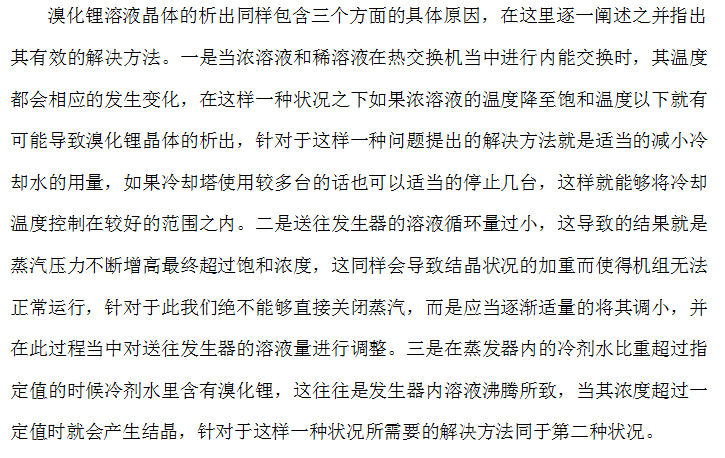 溴化锂溶液结晶的故障分析及处理办法