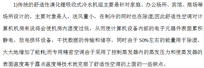 由于计算机机房内的设备大都是长年运行,工作时间长,要求空调设备具有及高的可靠性,舒适性溴化锂吸收式冷水机组较难满足要求,尤其是在冬天。