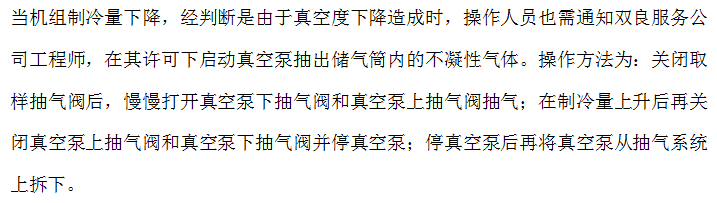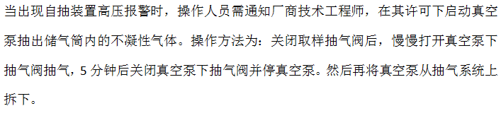 机组正常使用期间,一般使用自动抽气,即在机组运行过程中,抽气装置自动将机组吸收器内的不凝性气体抽到储气筒内。
