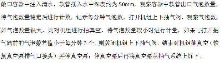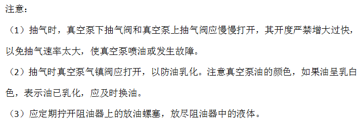 停机保养时,机组抽气操作方法为:关闭取样抽气阀,并慢慢打开真空泵下抽气阀和真空泵上抽气阀,另在真空泵排气口安装排气转换接口组件(卸掉真空泵排气口接头至真空泵本体,装上转换接口组件)与软管,保证转换接口与真空泵及软管连接处密封不漏。连接真空泵与阻油器,关闭取样抽气阀,启动真空泵,关闭真空泵气镇阀。