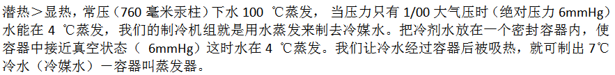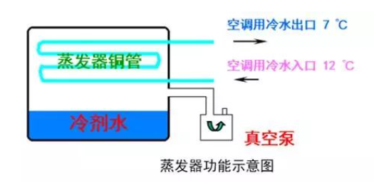 蒸发是一个吸收热量的过程-冷剂水蒸发吸收冷煤水的热量而达到制冷的目的。