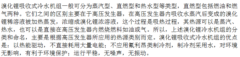 溴化锂吸收式冷水机组特点