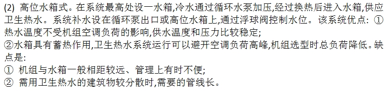 (1) 直供式。冷水经过换热器升温后直接供到卫生热水用户。如前所述,这种型式热水出口温度不稳定,因此,只能用在对水温要求不高的场合。