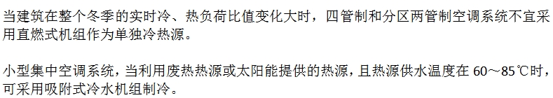 采用供冷(温)及生活热水三用型直燃机时,尚应完全满足冷(温)水及生活热水日负荷变化和季节负荷变化的要求;应能按冷(温)水及生活热水的负荷需求进行调节;当生活热水负荷大、波动大或使用要求高时,应设置储水装置,如容积式换热器、水箱等。若仍不能满足要求的,则应另设专用热水机组供应生活热水。