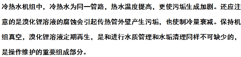 水侧水垢的形成,取决于管内流动的水质,特别是冷却水的水质,除使机组结垢,还使机组产生腐蚀,影响机组的正常运转与使用寿命。
