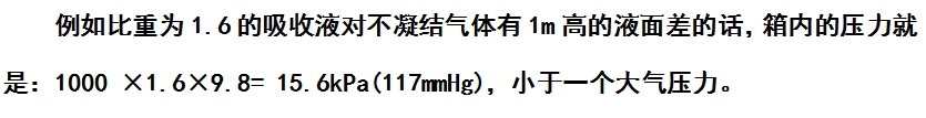 的溶液向下产生压力,所以储气室内不凝结气体的压力也就是吸收液的液面