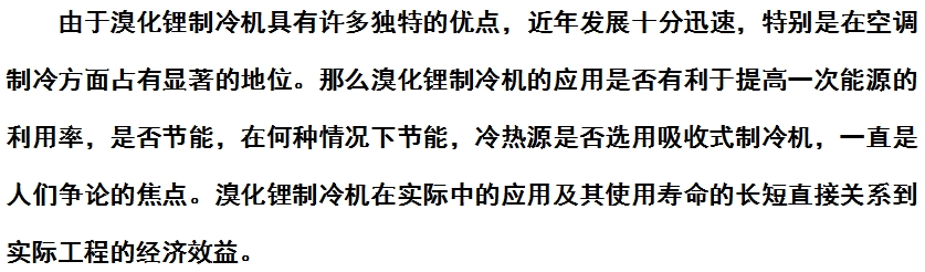 溴化锂以热能为动力源,以水为制冷剂,以溴化锂溶液为吸收剂,制取冷源水,称为溴化锂制冷机。