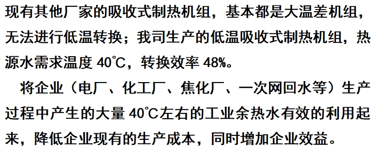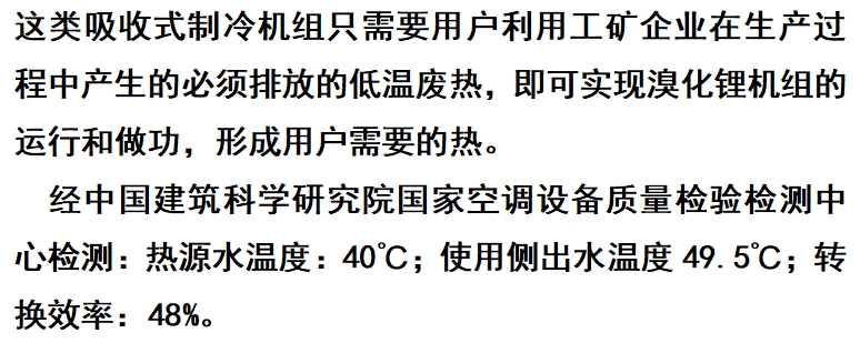 低温吸收式制冷机组是一种以低温余废热或一次网回水作