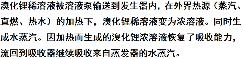 发生器当中产生的水蒸汽达到饱和后,将使溴化锂稀溶液