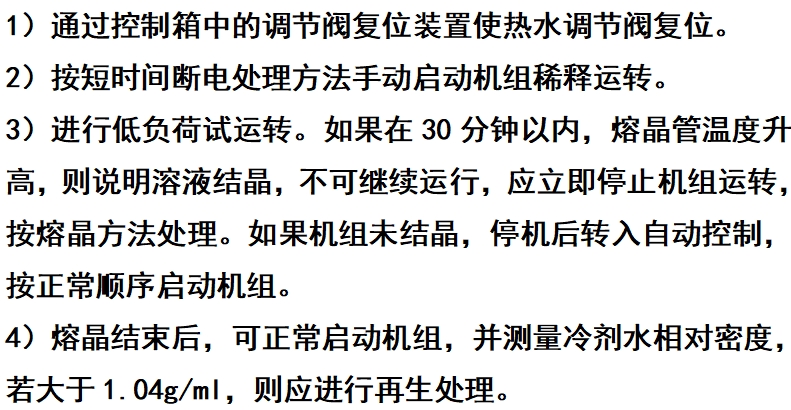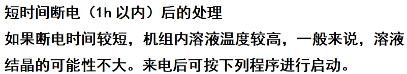 由于机组内溶液浓度较高,断电时间长,容易发生结晶。