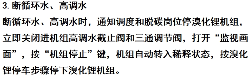 锂机组,立即关闭进机组高调水截止阀和三通调节阀,机