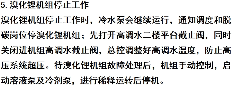 上;打开机组“监视画面”,按“机组停止”键,溴化锂