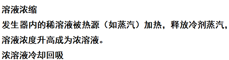 核心设备:发生器、吸收器、冷凝器、蒸发器、溶液热交