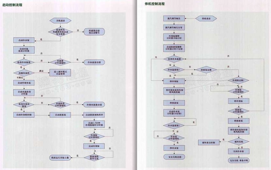 16DE开利吸收式溴化锂冷水机组启动、停机控制流程图
