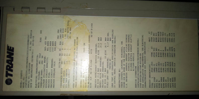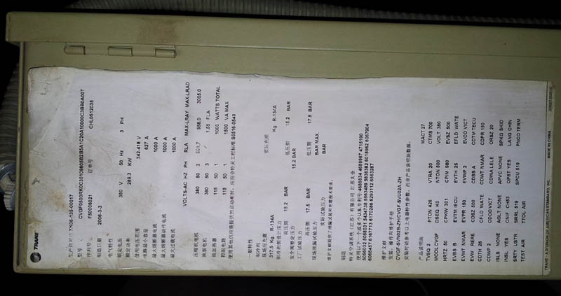 主机、在位 名称:特灵牌离心式冷水机组 产地:美国原装或无锡产