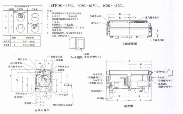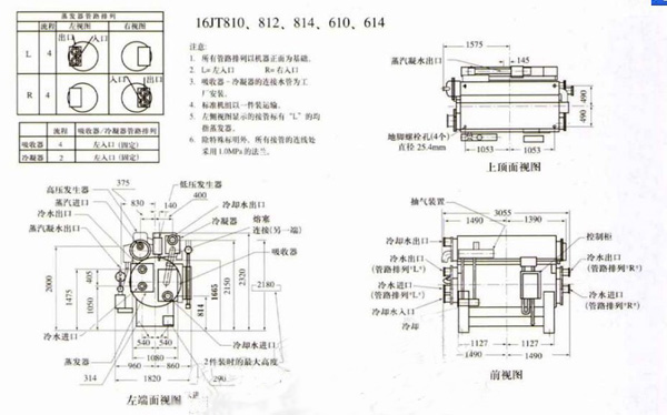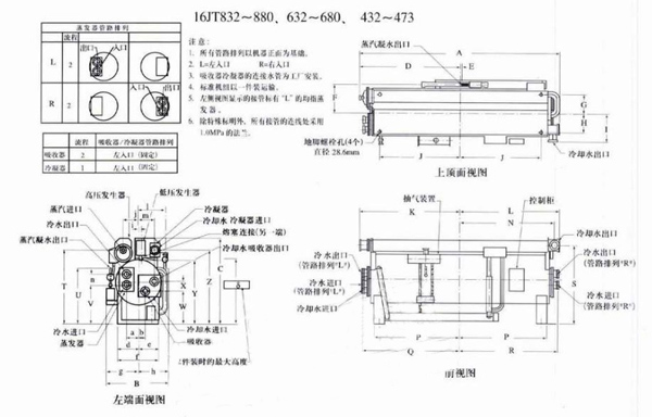 carrier,上海开利型号16JT溴化锂蒸汽双效吸收式冷水机组外形尺寸图