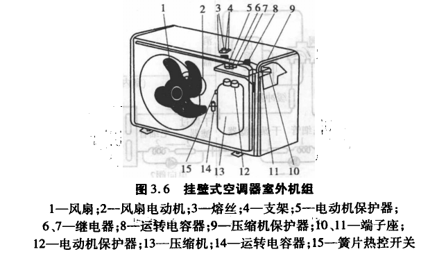 分体挂壁式空调器的室外机组如图3.6所示。