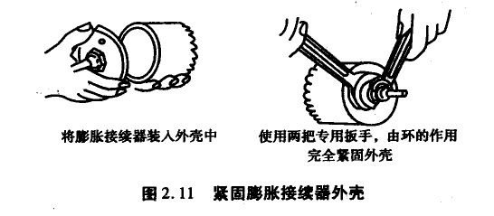 2)把膨胀接续器装入外壳,用两把专用扳手紧固,如图2.11所示。