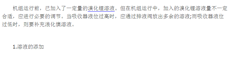 用溴化锂水溶液为工质,其中水为制冷剂,溴化锂为吸收剂。溴化锂属盐类,为白色结晶,易溶于水和醇,无毒,化学性质稳定,不会变质。溴化锂水溶液中有空气存在时对钢铁有较强的腐蚀性。溴化锂吸收式制冷机因用水为制冷剂,蒸发温度在0℃以上,仅可用于空气调节设备和制备生产过程用的冷水。这种制冷机可用低压水蒸汽或75℃以上的热水作为热源,因而对废气、废热、太阳能和低温位热能的利用具有重要的作用。
