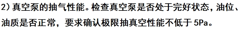 1)机组的气密性检查。每年启用前应检查主机真空度,不符合要求的应开启真空泵抽气至合格为止,一般真空度下降量一昼夜不超过66.7Pa(0.5mmHg)。