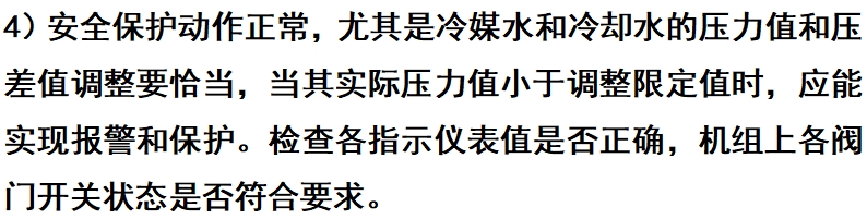 在制冷机组启动运转前,要求对制冷机组脱离辅助设备的状况进行一番检查,方能启动制冷机组运转。