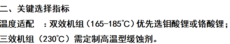 选用铬酸锂,碳钢-铜混合系统推荐钼酸锂。