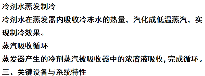 冷剂水循环两个核心流程,通过热能驱动实现制冷。
